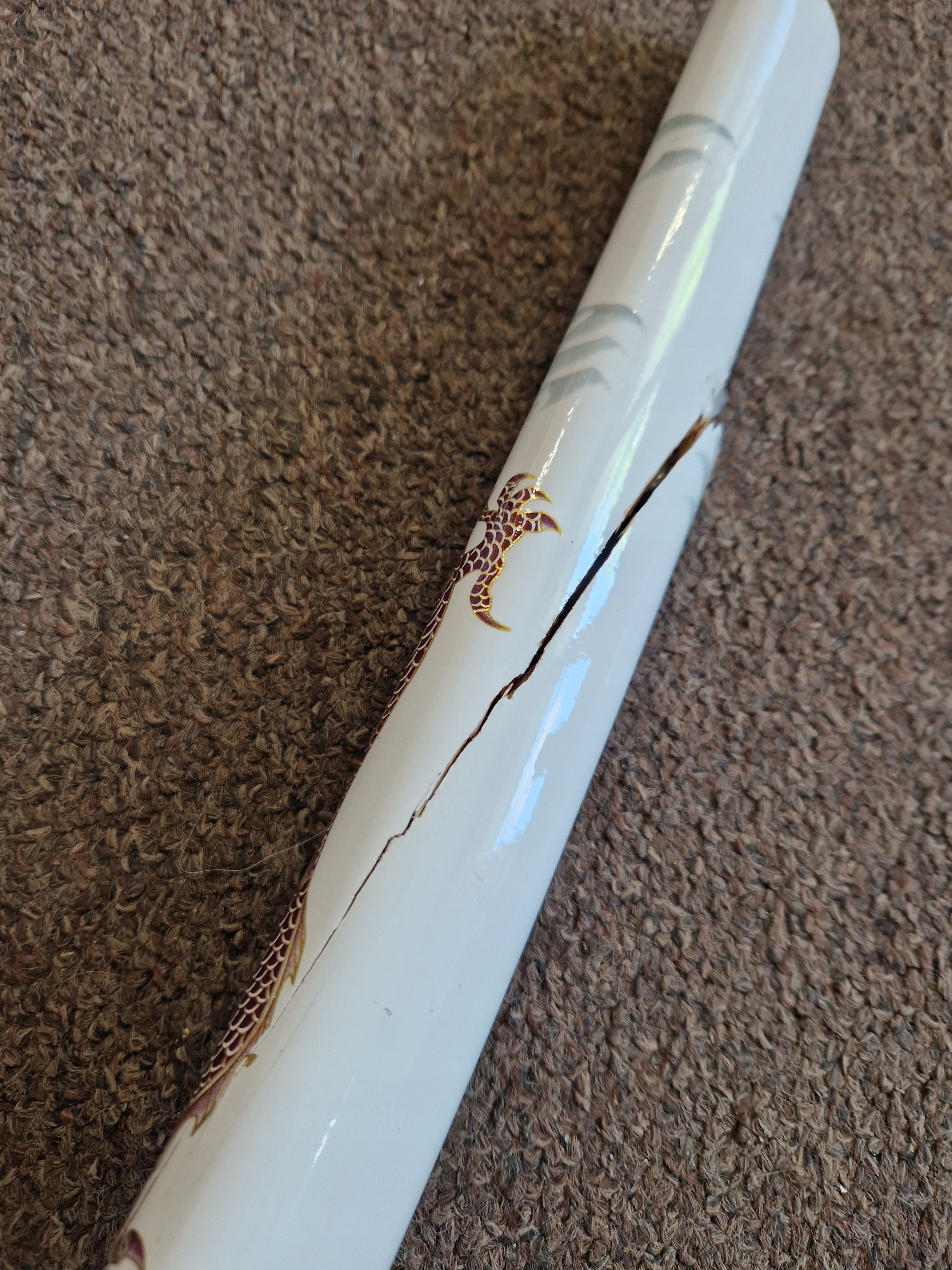 ❇aets Елемент цієї катани був зроблений з надзвичайної уваги до деталей . Лезо з високоякісною вуглецевою сталь було відшліфовано вручну, а характерна хамон надає йому справжній вигляд. дерев’яна піхва прикрашена мотивом дракона , що символізує силу та мудрість. Ручка загортається в бавовняну косу , під якою є імітація шкіри променів . Цуба та Кашира, виготовлені з цинку та алюмінієвого сплаву , додайте до меча елегантність та характер. Це поєднання традиційних прийомів із сучасними матеріалами робить катану не тільки красивою, але й . .