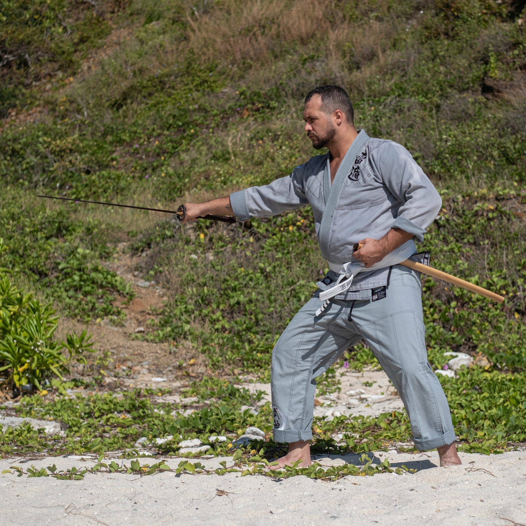 Поставляється з піхвами сая, зав’язаними на шиї койгучі, і шнуром сагео, що проходить через курі-ката. p>