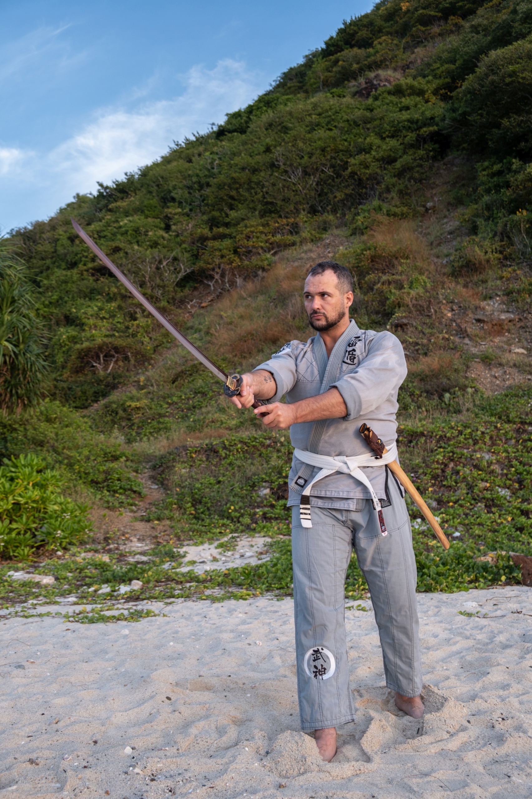 Катана виконана в традиційному японському стилі з багатошарового блоку високовуглецевої сталі, кованого в різних умовах. Цей процес разом із подальшим процесом згинання меча займає до тижня. Потім протягом двох тижнів лезо заточується камінням різної зернистості, що дозволяє отримати дуже гостру катану.