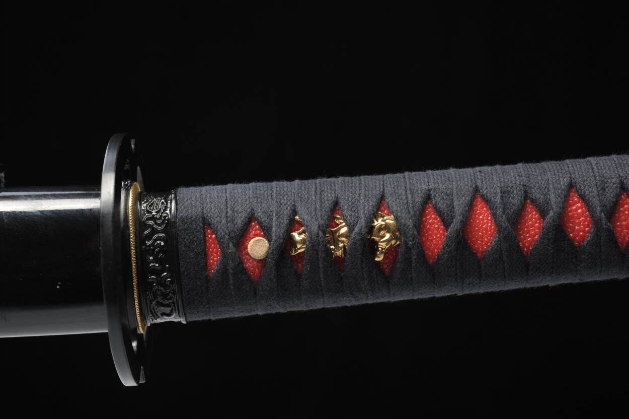 Ця катана була виготовлена в невеликій кузні з використанням лише традиційних методів виготовлення зброї та оригінальних матеріалів. Ручка складається з двох шматків твердого дерева японської магнолії, склеєних між собою рисовим клеєм і покритих шкірою ската. Він має кільце під назвою «фучі» на стороні ручки та комір, який охоплює лезо біля основи руків’я, який називається «хабак». Цуба – ручка диска з кольорових металів, багато декорована. Вигнуте лезо, викуване ковалями зі сталі 1060 за допомогою техніки, що передається з покоління в покоління.