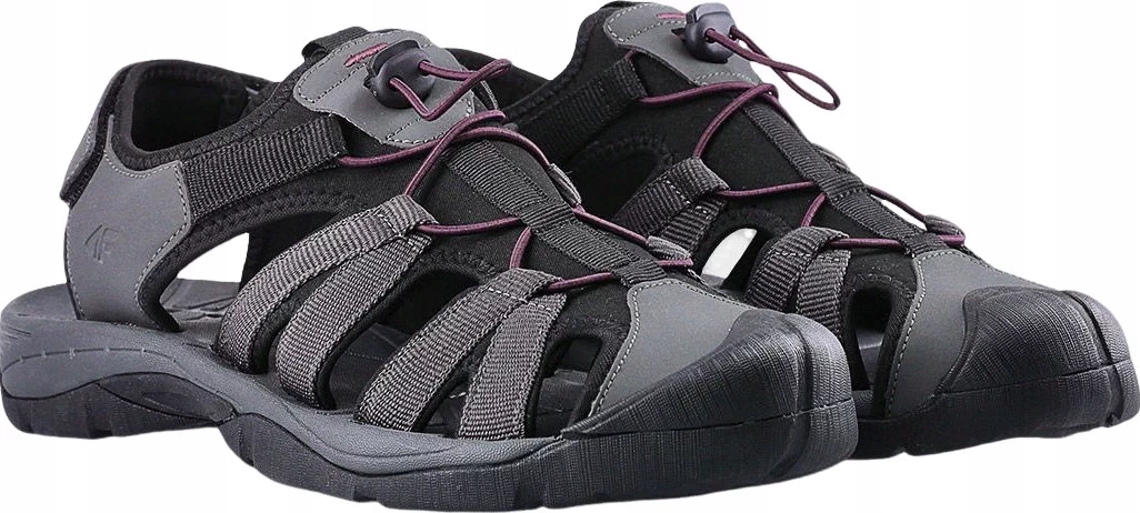 Сандалі 4FRSS24FSANM058 від 4F забезпечують комфорт і захист під час літніх заходів. Завдяки отворам у верхній частині вони забезпечують оптимальну вентиляцію ніг. Система швидкої шнурівки дозволяє швидко та легко одягнути босоніжки. Посилений захист пальців захищає від можливих травм. М'яка підкладка забезпечує додатковий комфорт, а формована проміжна підошва Cmeva забезпечує легкість і м'якість. Підошва з протектором гарантує хороше зчеплення з різними поверхнями. Босоніжки мають логотип бренду, який підкреслює якість і додає характер.