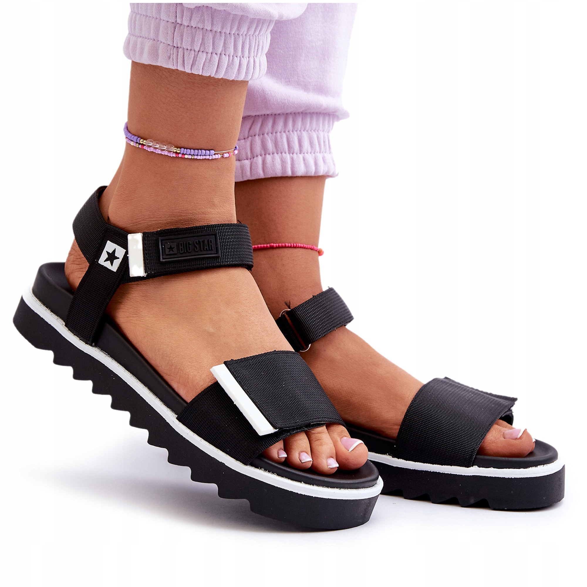 Жіночі босоніжки Big Star - ідеальний вибір для літніх днів. Виготовлений з текстильного матеріалу. На платформі вони не тільки модні, але й зручні. Застібається на липучку, що забезпечує легке і швидке регулювання по ширині стопи. Ці класичні босоніжки стануть ідеальним доповненням до вашого літнього стилю, забезпечуючи комфорт і свободу рухів! Обираючи розмір, орієнтуйтеся на таблицю розмірів.