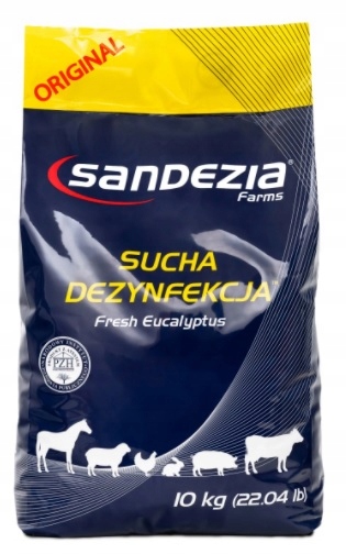 САНДЕЗІЯ СУХА ДЕЗІНФЕКЦІЯ 10кг - препарат для дезінфекції тваринницьких приміщень. Продукт ефективно бореться з бактеріями, вірусами, паразитами та грибками. Знищує личинкові стадії мух та інших комах, значно скорочуючи їх кількість. Зменшує кількість захворювань у стаді, обмежує використання антибіотиків і знижує витрати на лікування, а в разі інфекції підтримує лікування.