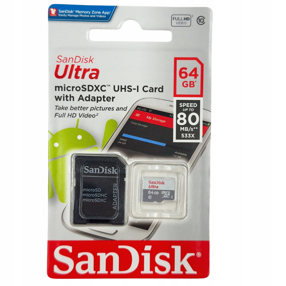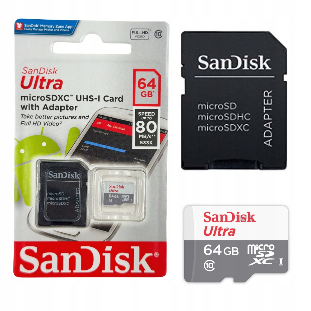 Sandisk Ultra Microsdxc UHS-I-карта з карткою пам'яті адаптера 64 Гб 80 Мб/ с