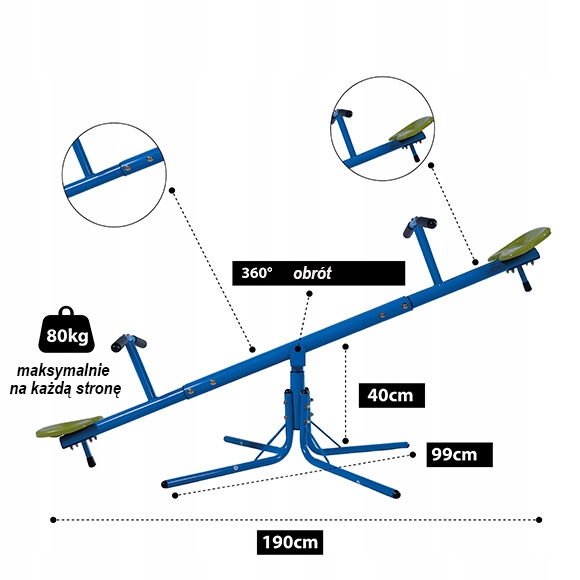 - гойдалки 2 в 1 мають функцію балансир вгору-вниз і карусель з поворотом на 360 градусів