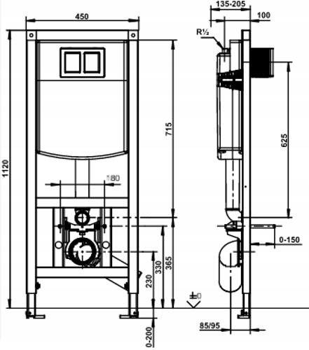 - РАМКА INEO 450 мм для унітазу, висота 112 см