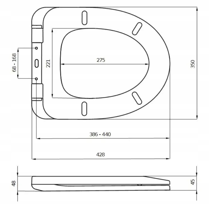 Туалетна дошка має металевий повільний колір (швидкий випуск) однією центральною кнопкою. Знизу петлі мають прокладку еластомеру для запобігання порцелянових дощок.