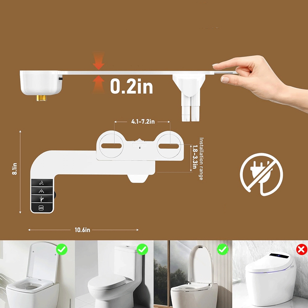 🏠 Універсальне використання: Неелектронне душове біде з високоякісними аксесуарами, сумісне з більшістю стандартних унітазів. Монтаж за хвилину. Завдяки своїй простоті він ідеально підходить для всіх вікових груп - дітей, людей похилого віку, людей з особливими гігієнічними потребами.