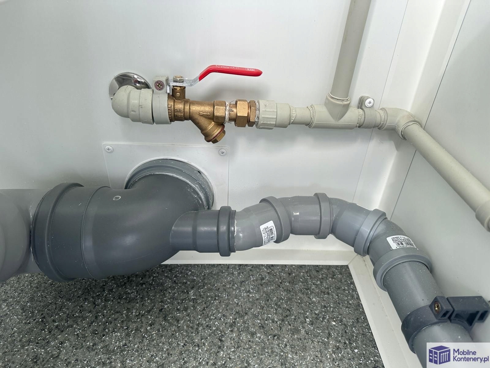 Система каналізації: каналізаційна труба з діаметром 110 мм, готова до зливання стічних вод до резервуару або з'єднання.
