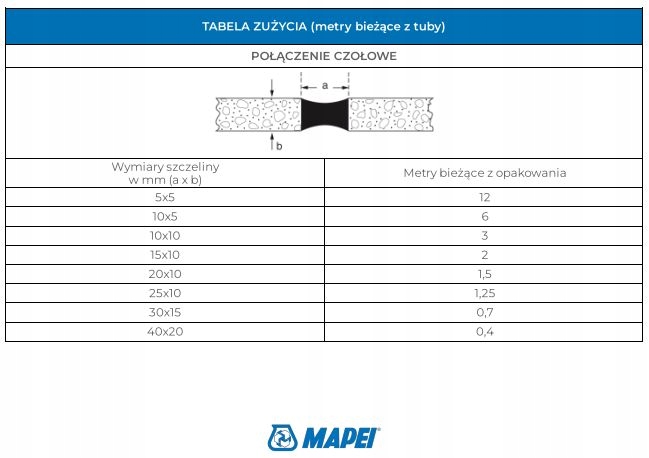 - Споживання MAPESIL AC залежить від розміру зазору .