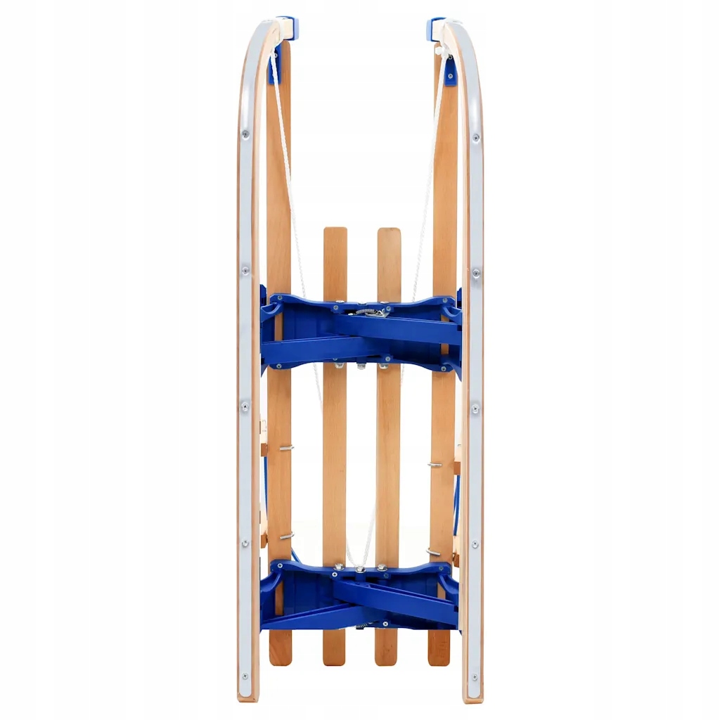 Складні дерев'яні сани зі спинкою - бежево-сині 119x37x45 см