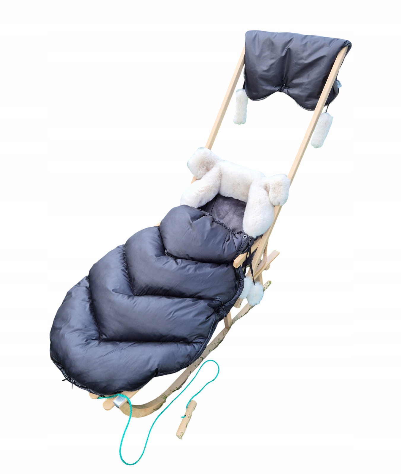 Ці сани є ідеальним рішенням для зимових розваг і активного відпочинку на свіжому повітрі, гарантуючи задоволення для всієї родини. Спальний мішок виготовлений із сучасної тканини з наймоднішою атласно-матовою обробкою, стьобанням «ялинка», великими складками, що забезпечують додатковий простір для взуття, універсальною системою кріплення на поясі, кишенею ззаду, яку можна розмістити ззаду. спинка коляски спальний мішок призначений для приблизно третього року життя дитини. Муфти для санок - відмінне практичне рішення для батьків. Прикріплений до ручки санок/коляски, захищає руки від вітру, холоду та дощу. Муфта тепла і м'яка. Кріпиться до коляски за допомогою застібок, що полегшує установку.