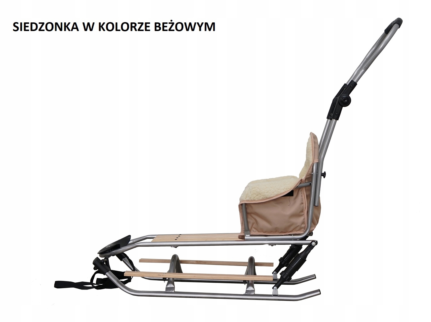 - Санки зі спинкою та ручкою для штовхання з металевої конструкції