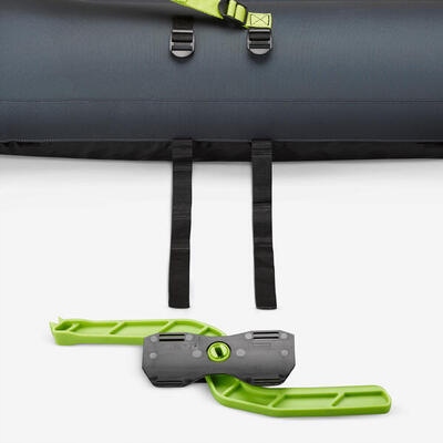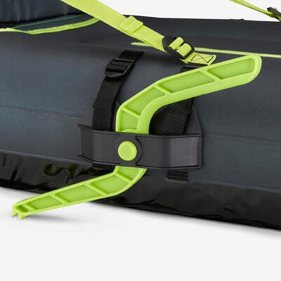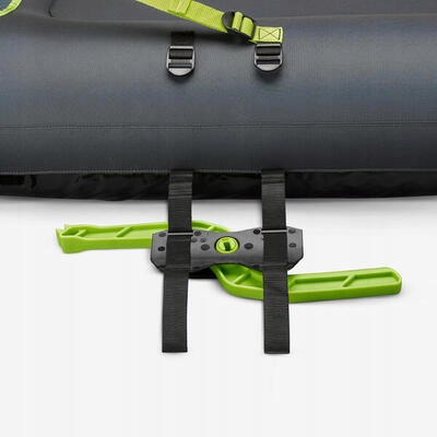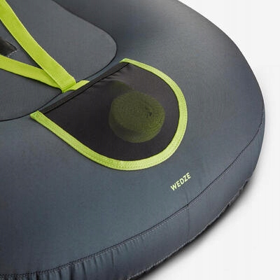 Щоб уникнути перепадів атмосферного тиску, накачуйте санки поблизу місця, де плануєте на них кататися. Повністю розкладіть санки. Використовуйте такий насос, як Quechua 4L, із вбудованим манометром. Ми рекомендуємо надути надувний обруч до 1,5 PSI. Щоб переглянути насос, скопіюйте код 8601387 і вставте його в пошукову систему. Ви також можете накачати санки ротом. Насос необхідно придбати окремо.