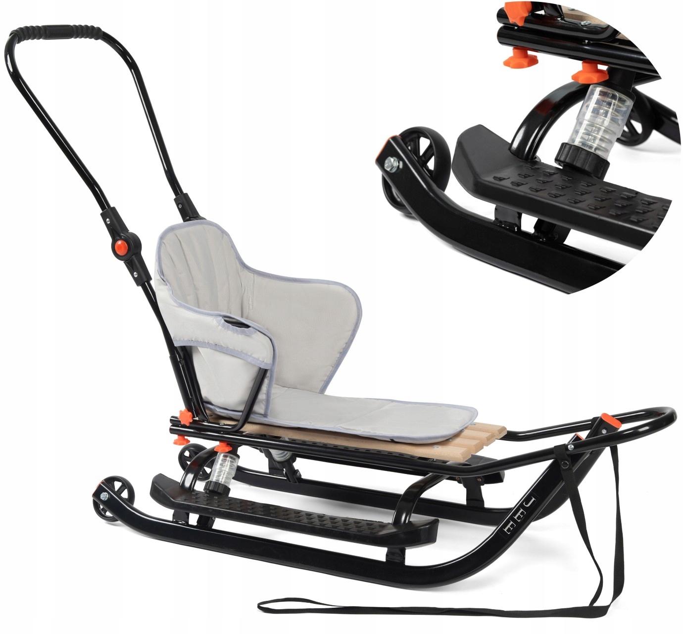 САНКИ JEE VIP Колеса АМОРТИЗАТОРИ для дітей з МАТРАЦИКОМ ПІДНІЖКИ ШТОВХАЧ