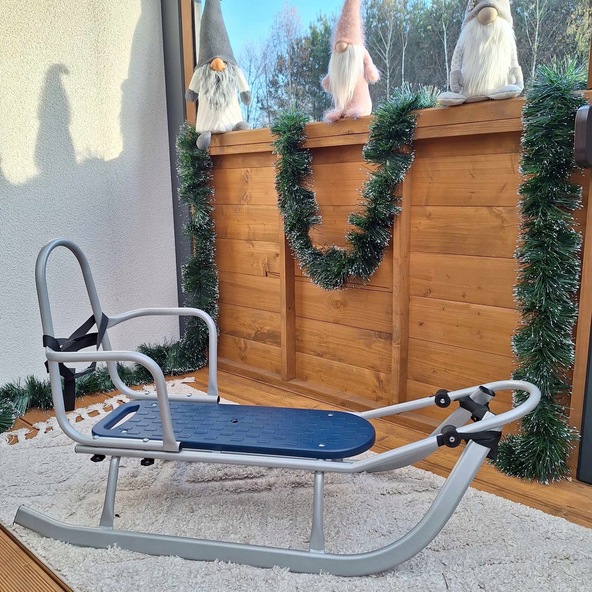 Sanki metalowe Piccolino z oparciem oraz ocieplanym śpiworkiem Różne kolory