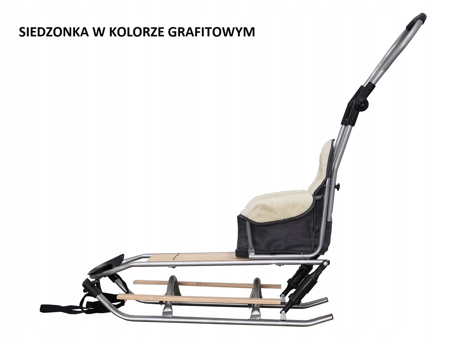 - Санки зі спинкою та ручкою для штовхання з металевої конструкції