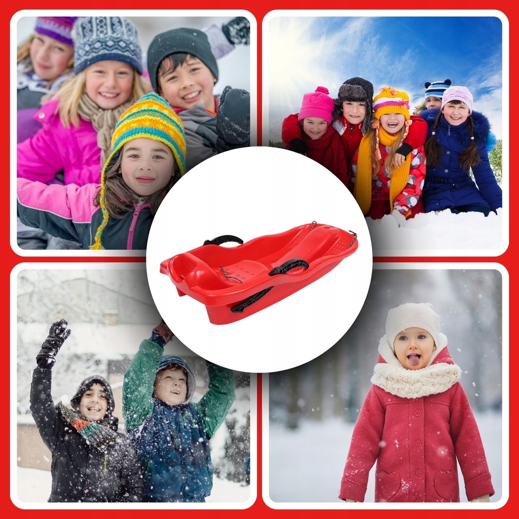 ЧЕРВОНІ ПЛАСТИКОВІ САНІ З ГАЛЬМОМ, ГІРКИ З РУЧКОЮ ТА ШНУРКОМ ДЛЯ ЗИМИ