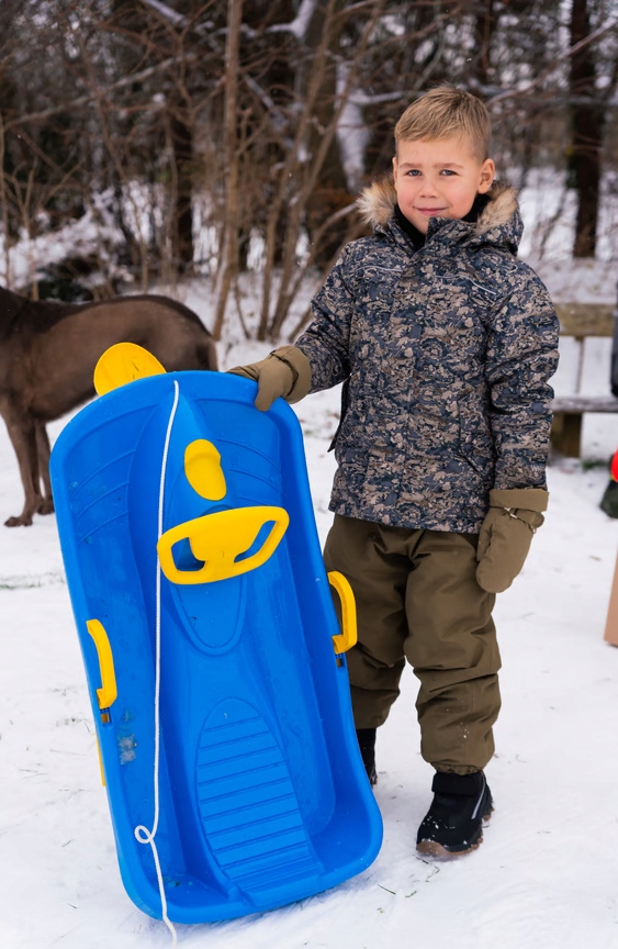 Зробіть на снігу набагато приємніше! санки доступні в 3 кольорах: червоні, сині та чорні, а найважливіші елементи, такі як кермо, керування лижами та бічними гальмами жовті.