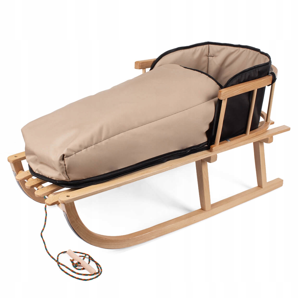 САНКИ ЗІ СПАЛЬНИМ МІШКОМ І СПИНКОЮ ДЕРЕВ'ЯНІ САНКА, МАТРАЦИК, ШНУРОК СУЦІЛЬНИЙ