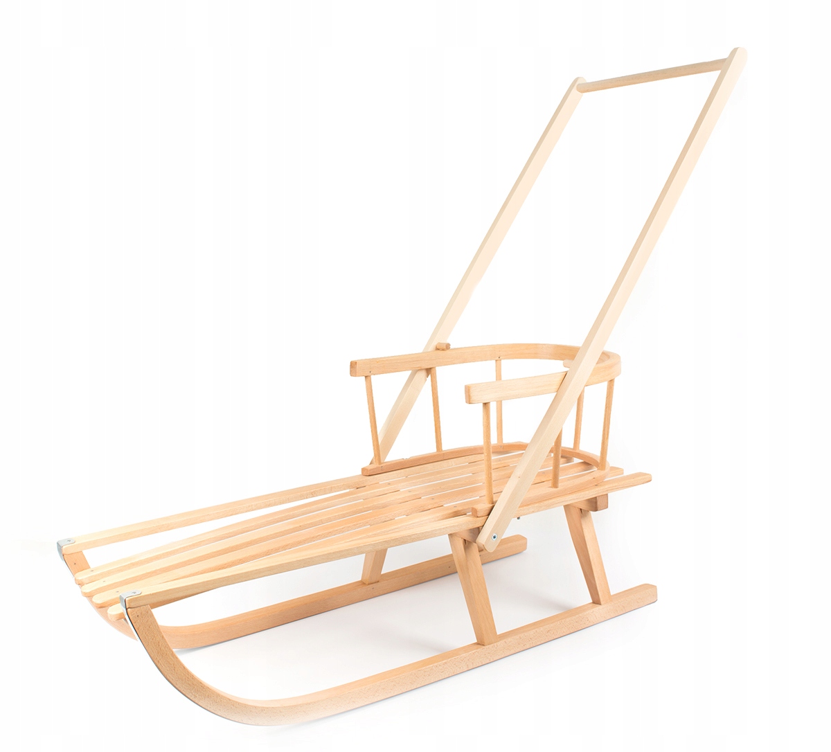 Кожна пара наших саней виготовляється в польській столярній майстерні з використанням ручної обробки деревини бука. Натуральний лак підкреслює красу сировини, одночасно захищаючи поверхню від вологи та морозу. Це 100% польський продукт, екологічний і екологічно чистий - розроблений з урахуванням безпеки та комфорту наймолодших користувачів.