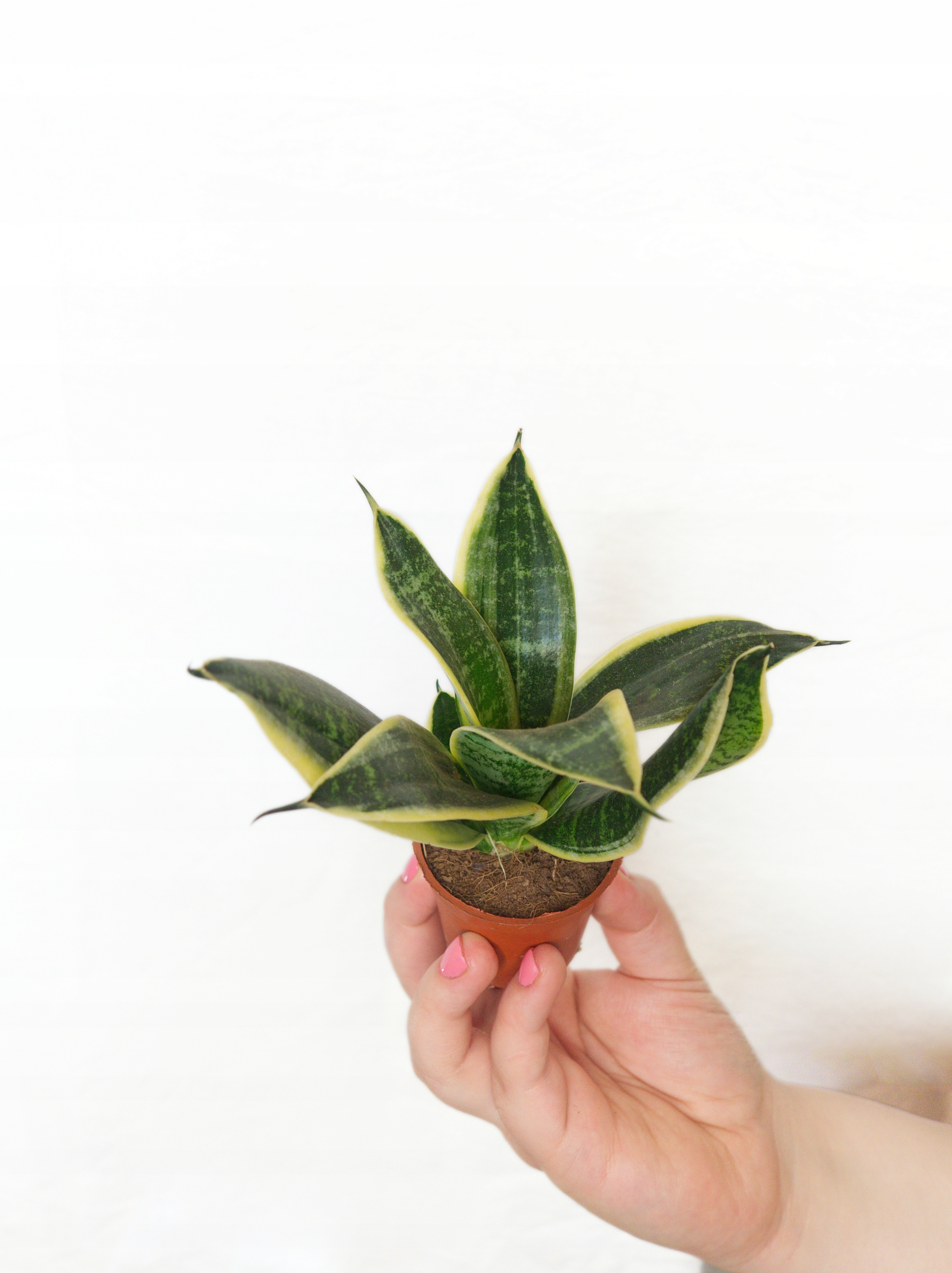 Sansevieria trifasciata 'Hahnii marginated' - Sansevieria trifasciata походить із тропічних регіонів західної та південної Африки. 'Hahnii Marginated' - ще одна з надзвичайно популярних і улюблених карликових змійових рослин. Він досягає лише 20-25 см у висоту. М'ясисті листки вкриті поперечними смугами неправильної форми темно- та світло-зелених відтінків. Додатковою перевагою є красиві, неправильні, золотисті лінії, що проходять по краях листя. Коли ця сансевієрія досягне відповідного віку, вона почне пускати нові пагони, створюючи щільні золотисто-зелені купки.