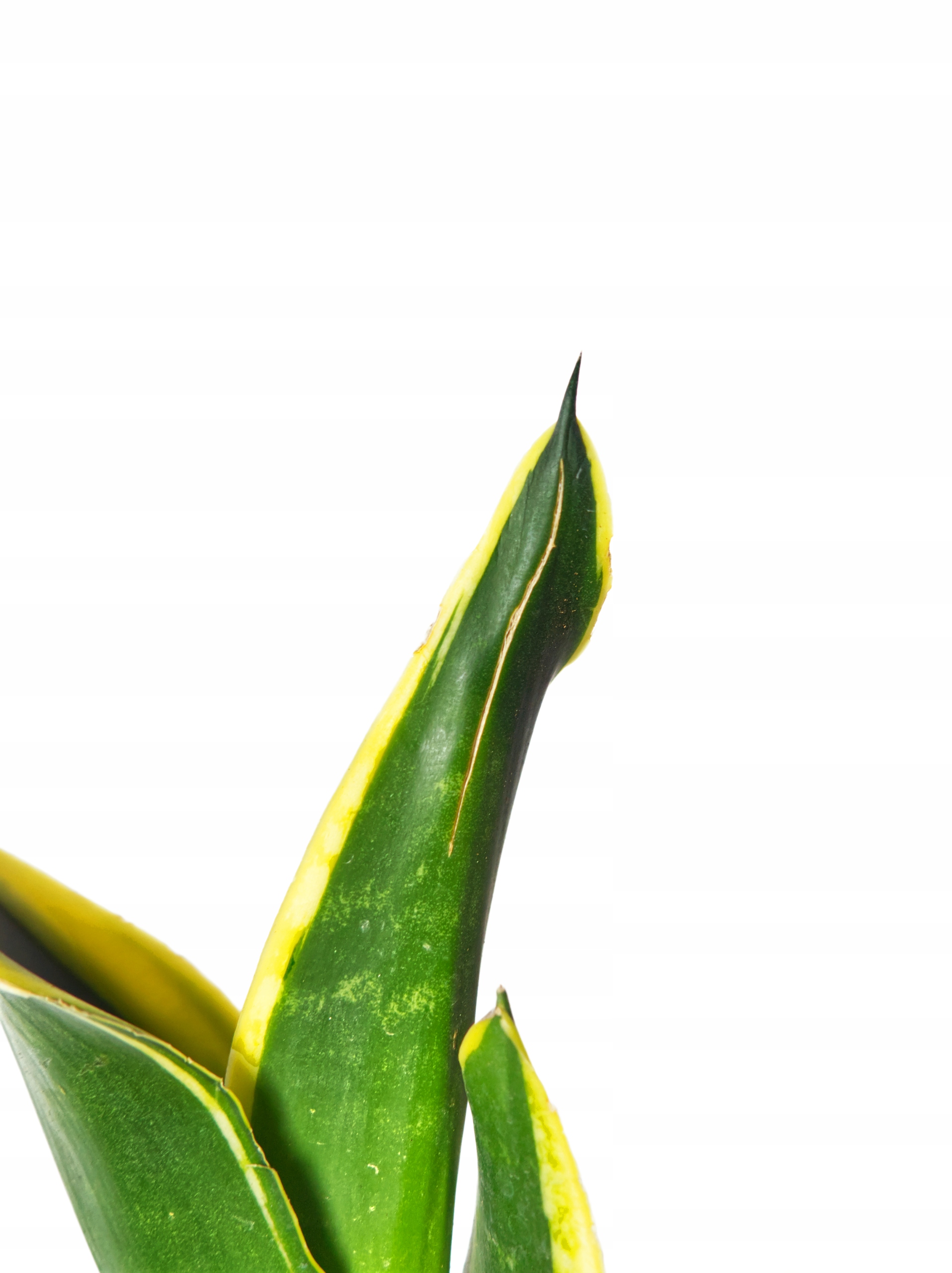 Sansevieria trifasciata 'Sheri' - Sansevieria trifasciata походить із тропічних регіонів західної та південної Африки. Сорт 'Sheri' характеризується красивими, темно-зеленими, майже гладкими листками з привабливими жовто-золотистими краями. Їх блискуча поверхня не дозволяє байдуже пройти повз них. Листя утворюють компактні високі купи.Шери зміїний виростає до 60-70 см у висоту. Ця сансевієрія буде чудово працювати в світлих, просторих кімнатах, надаючи їм характер. Коли рослина дозріє, вона почне виробляти присоски, які з’являються в землі навколо неї.
