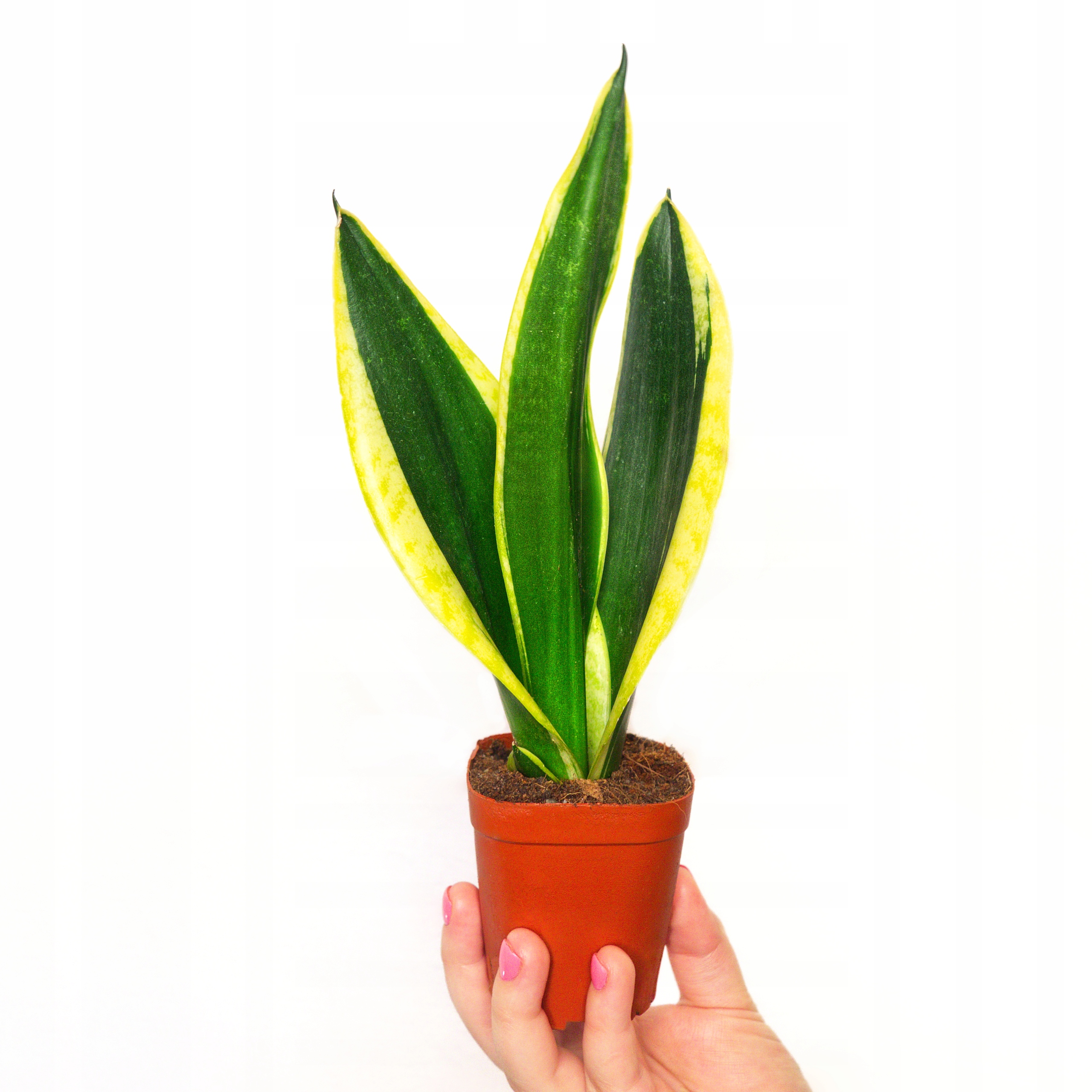 Sansevieria trifasciata 'Sheri' - Sansevieria trifasciata походить із тропічних регіонів західної та південної Африки. Сорт 'Sheri' характеризується красивими, темно-зеленими, майже гладкими листками з привабливими жовто-золотистими краями. Їх блискуча поверхня не дозволяє байдуже пройти повз них. Листя утворюють компактні високі купи.Шери зміїний виростає до 60-70 см у висоту. Ця сансевієрія буде чудово працювати в світлих, просторих кімнатах, надаючи їм характер. Коли рослина дозріє, вона почне виробляти присоски, які з’являються в землі навколо неї.