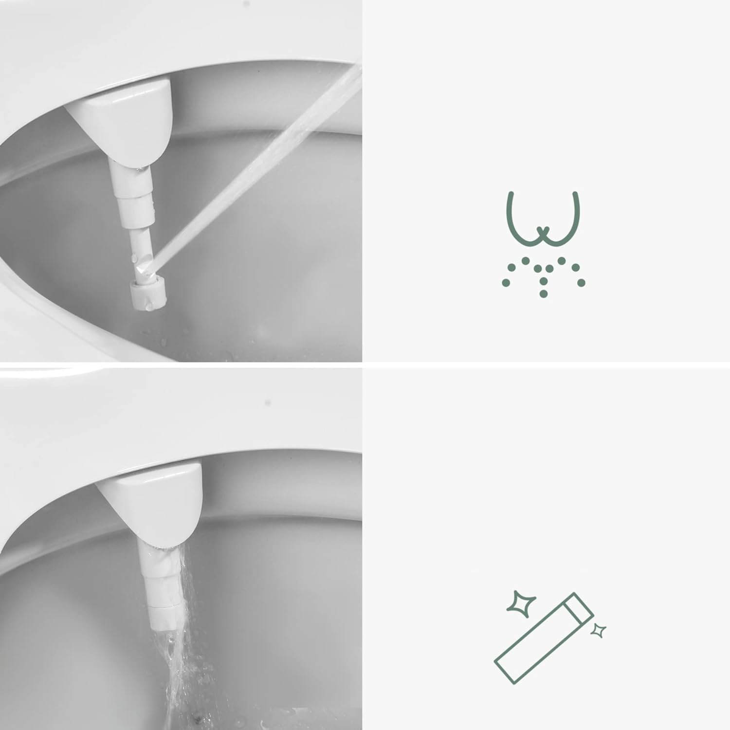 ➡️ 【Захисний дизайн насадки】 Верхня частина насадки біде увігнута донизу, що дозволяє насадці мати відповідний зазор із кільцем ручки унітазу. Це може запобігти прориву насадки крізь кільце основи унітазу під дією зовнішньої сили під час користування унітазом.