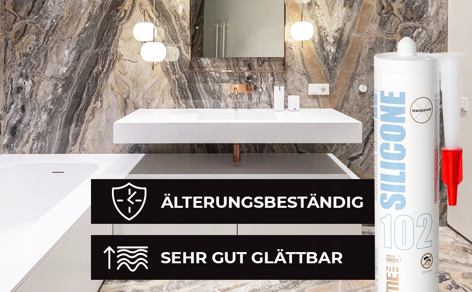 Високоякісний, гнучкий, водостійкий однокомпонентний силіконовий герметик.