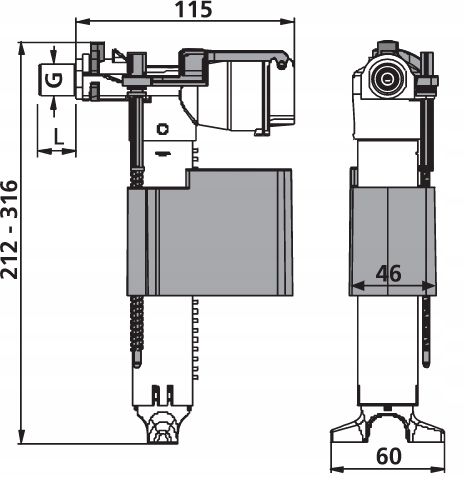 маленький, компактний дизайн , висока продуктивність наповнення - 3,6 л/хв. при тиску 0,5 бар, швидкозакривається, надзвичайно тихий, лише 13 дБ(A) - фітинги класу I, латунний з'єднувальний штуцер, регульована кількість промивної води за допомогою плавно регульованого поплавця, з телескопічною трубою подачі, універсальна для установки в керамічні бачки, нижні змивники та бачки прихованого монтажу,