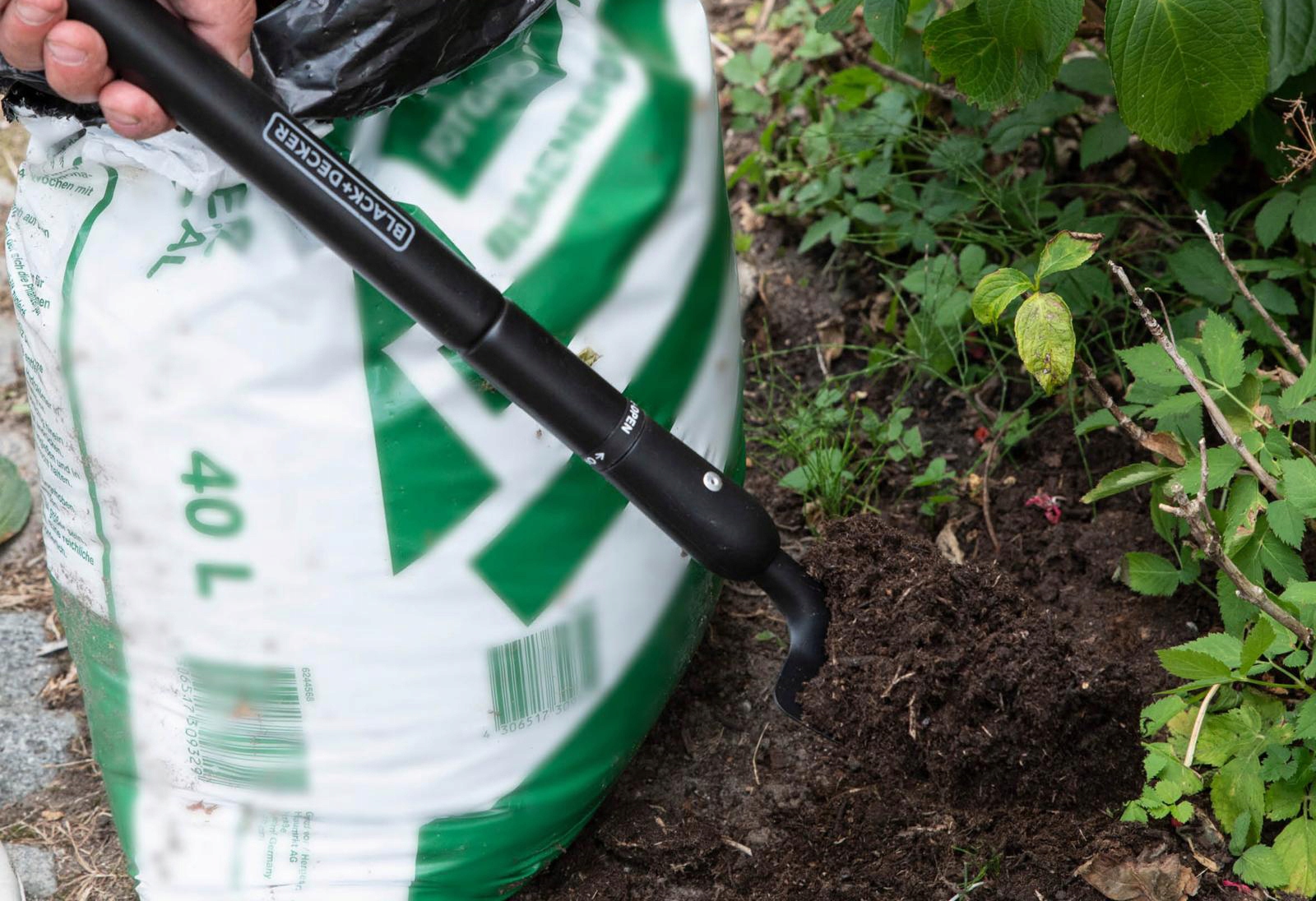 Садова кельма Black&Decker із телескопічною ручкою — це інструмент, який поєднує в собі інновації та функціональність, полегшуючи роботу в саду.