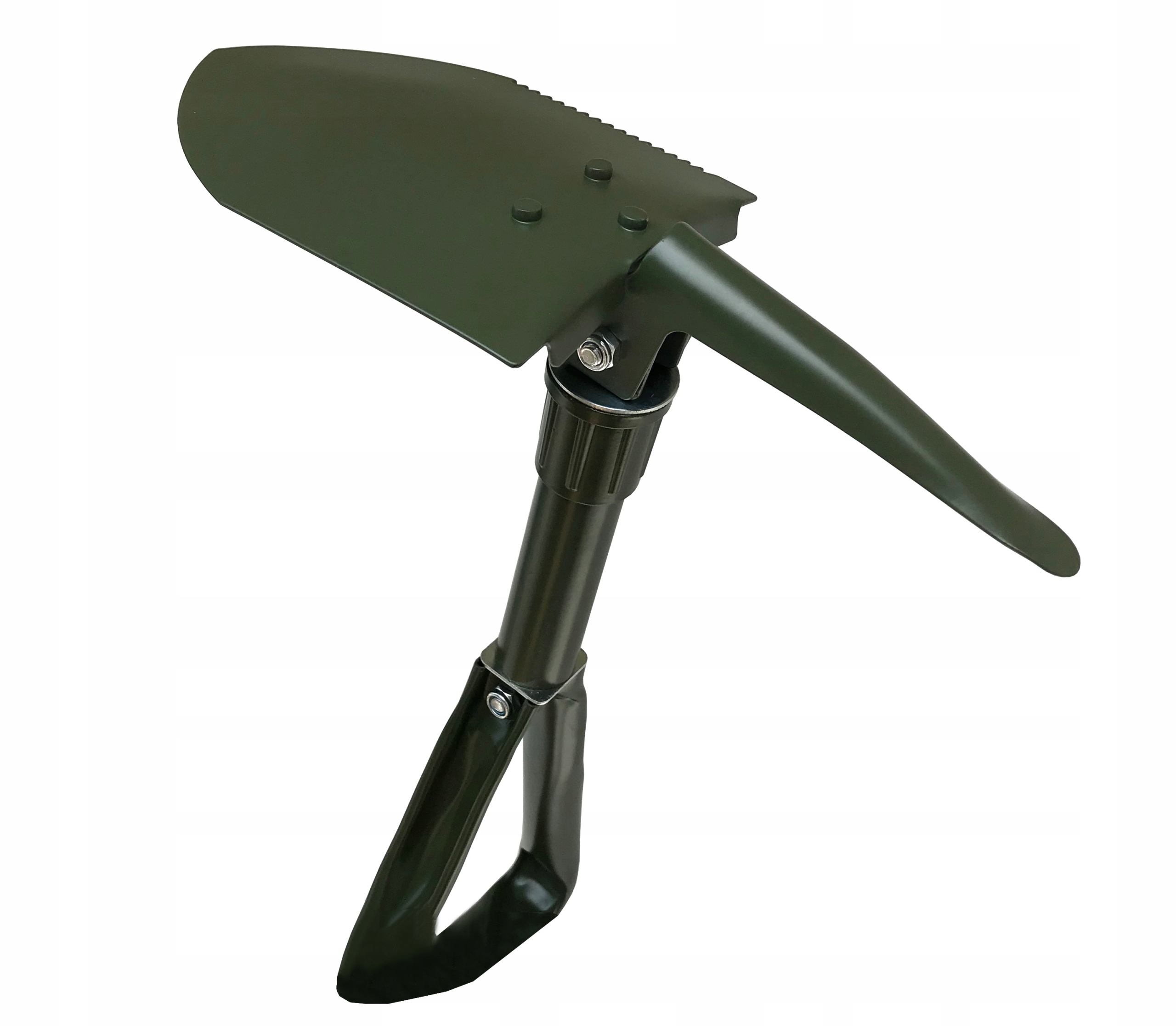 Інструмент можна замкнути у розкладеному положенні (як лопата) або наполовину зігнутому, щоб служити киркою.