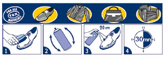 Допомагає легше видалити плями та бруд, запобігає пошкодженню шкіри та текстилю. Не змінює колір взуття, властивості шкіри та не впливає на повітропроникність взуття. Без силікону. Це не обмежує гнучкість просочених матеріалів. Для натуральної гладкої та зернистої шкіри, замші, нубуку, синтетичної шкіри, жирної шкіри, текстилю та мікрофібри, Gore-Tex ...Для взуття, одягу, меблів, аксесуарів зі шкіри , брезенти, тенти... Перед використанням кожного шкіряного виробу перевірте його на невидимому шматку, щоб перевірити вплив виробу на колір і структуру шкіри. Якщо ефект відповідний, можна переходити до подальших дій.