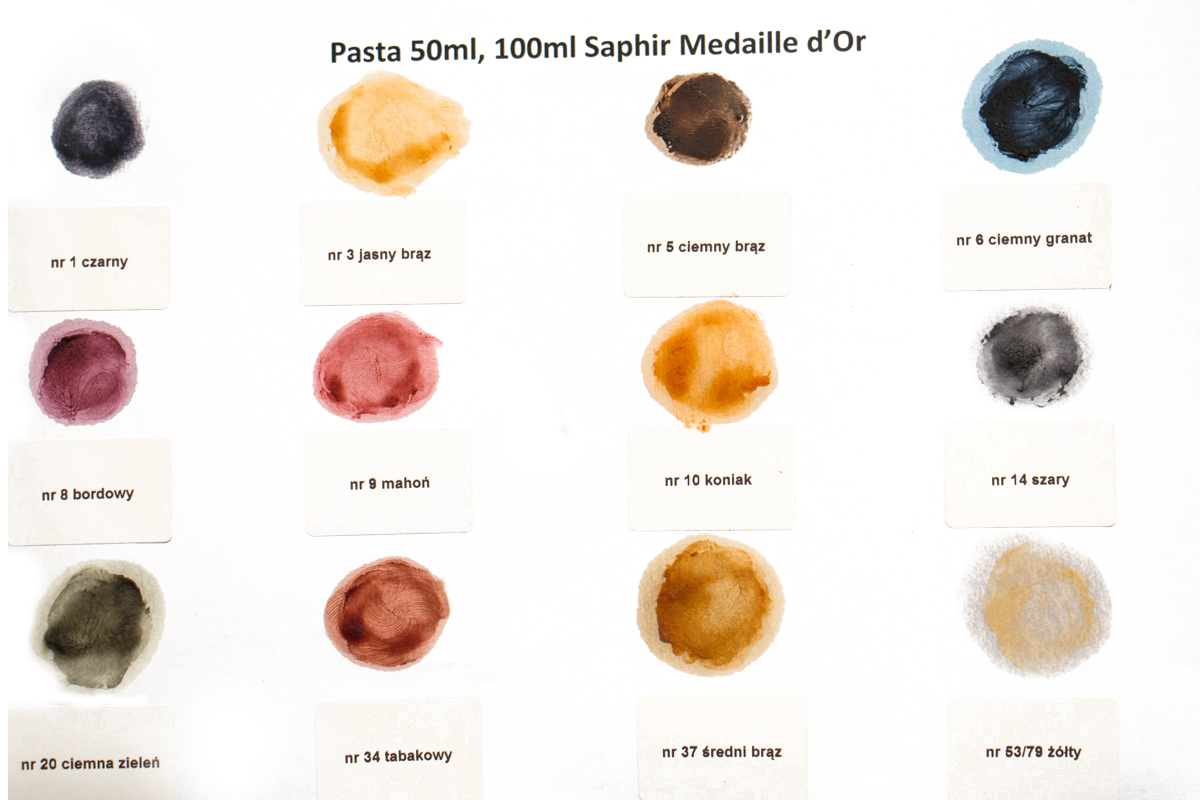- Якщо на взуття раніше були нанесені просочення або взуття сильно забруднене, перед нанесенням пасти SAPHIR рекомендується очистити шкіру засобом RENOMAT SAPHIR
