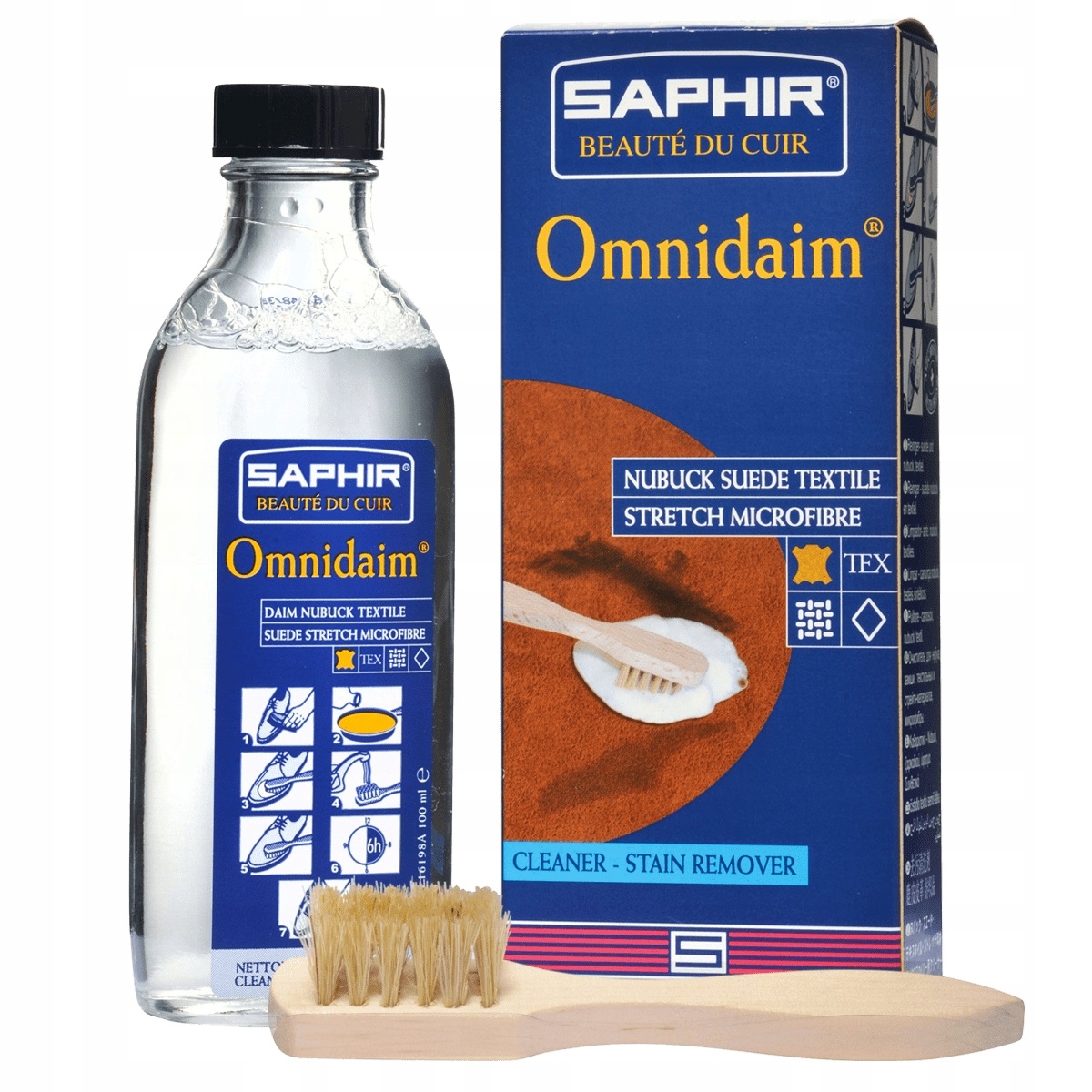 Omnidaim Saphir 100ml -Suede, Nubuck, Fabrics та "TEX" матеріалів (не використовуйте для гладкої, зернової шкіри).