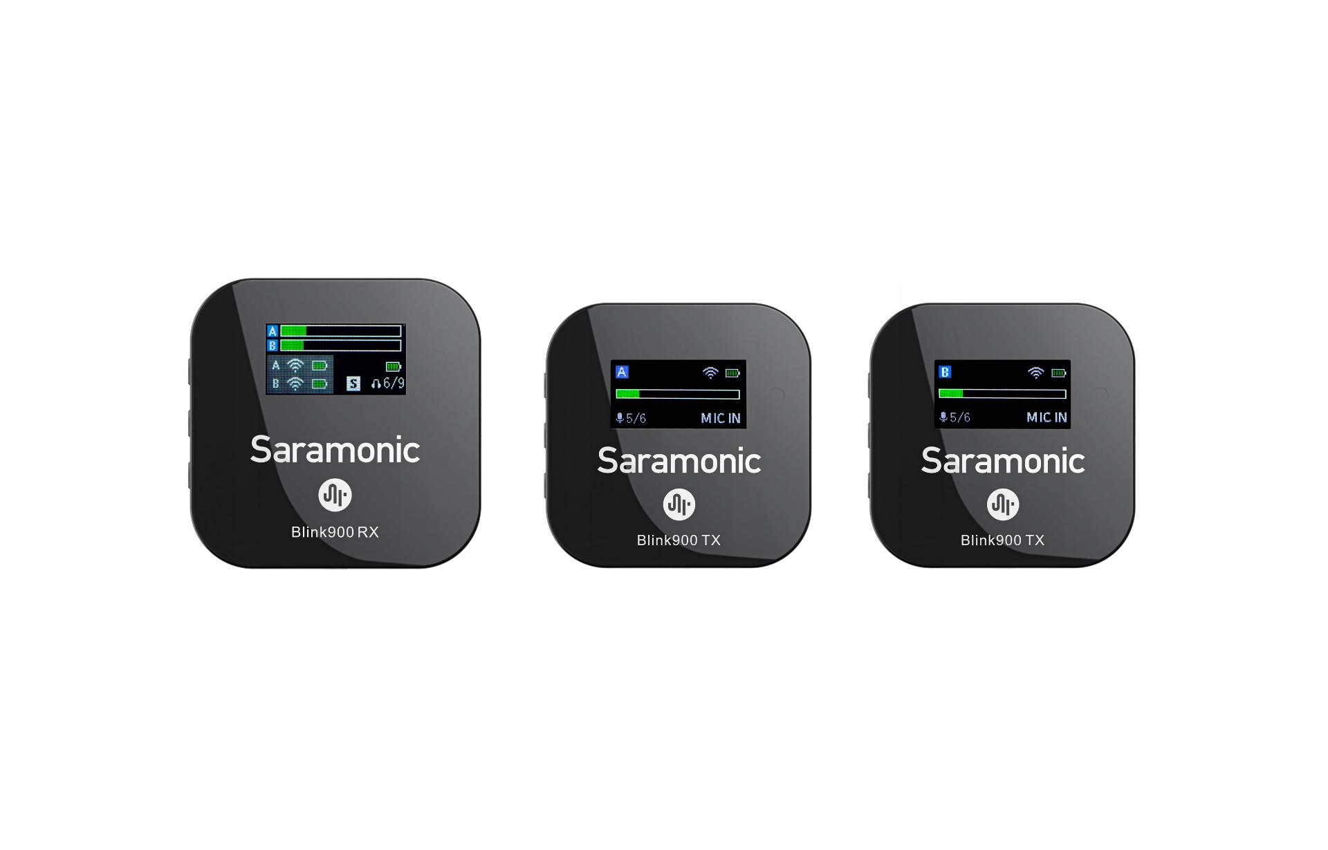 Набір передач бездротової бездротової передачі Blink900 B2 (RX + TX + TX) був створений для аудіозаписів, використовуючи такі пристрої, як камери, камери, смартфони, планшети, реєстратори або комп'ютери. Зручні мікропорти, що входять до нього, також працюватимуть під час етапних виступів, коли приймач підключений до змішувача. Пристрої будуть оцінені творцями Інтернету, YouTubers та людьми, які працюють з вебінарами. Невеликі мікропорти з вбудованими РК -екранами забезпечать вражаючий діапазон передачі до 200 м. Пристрої можна легко зарядитися захисним корпусом, що також виступає як 3-канальний зарядний пристрій.