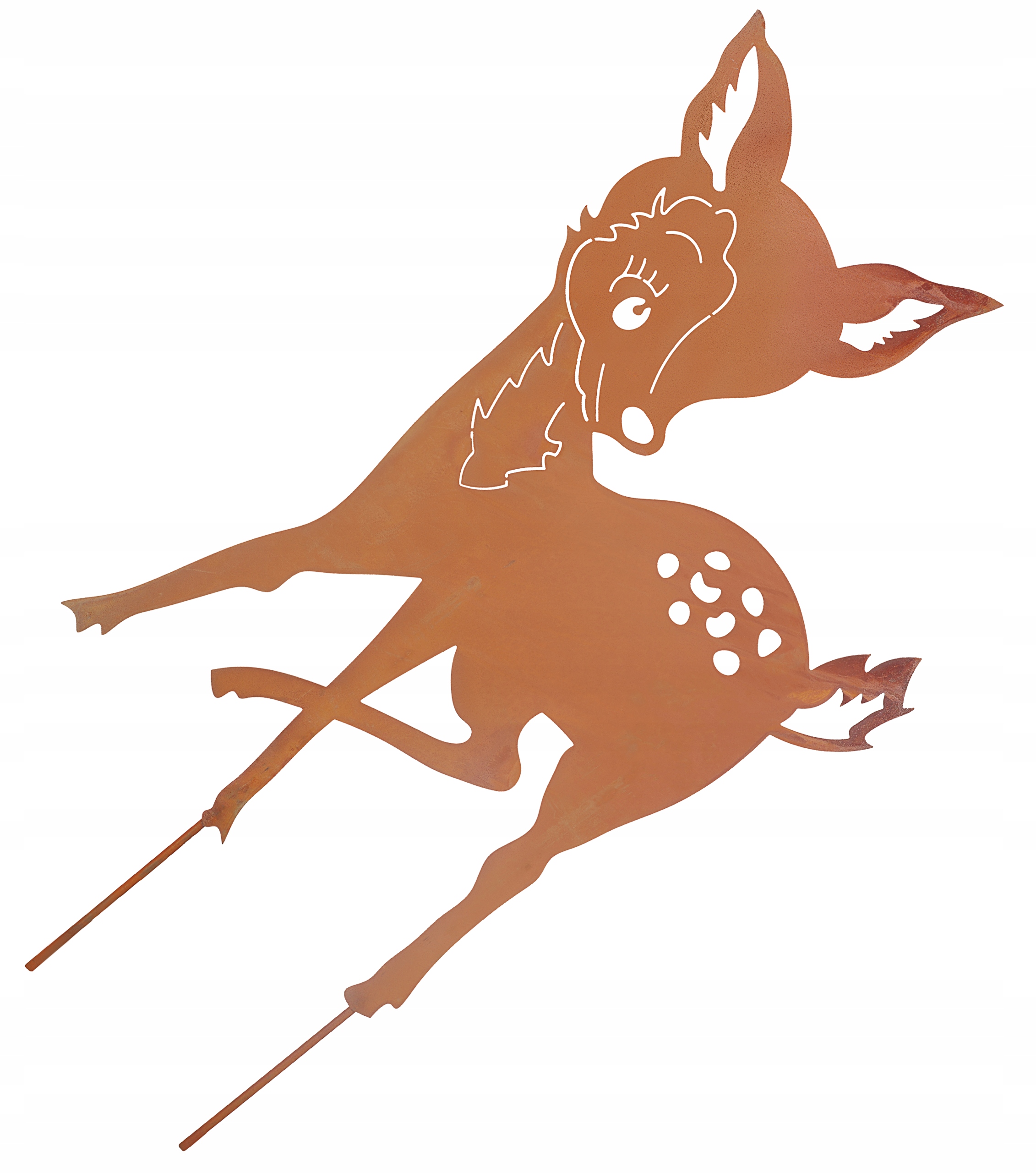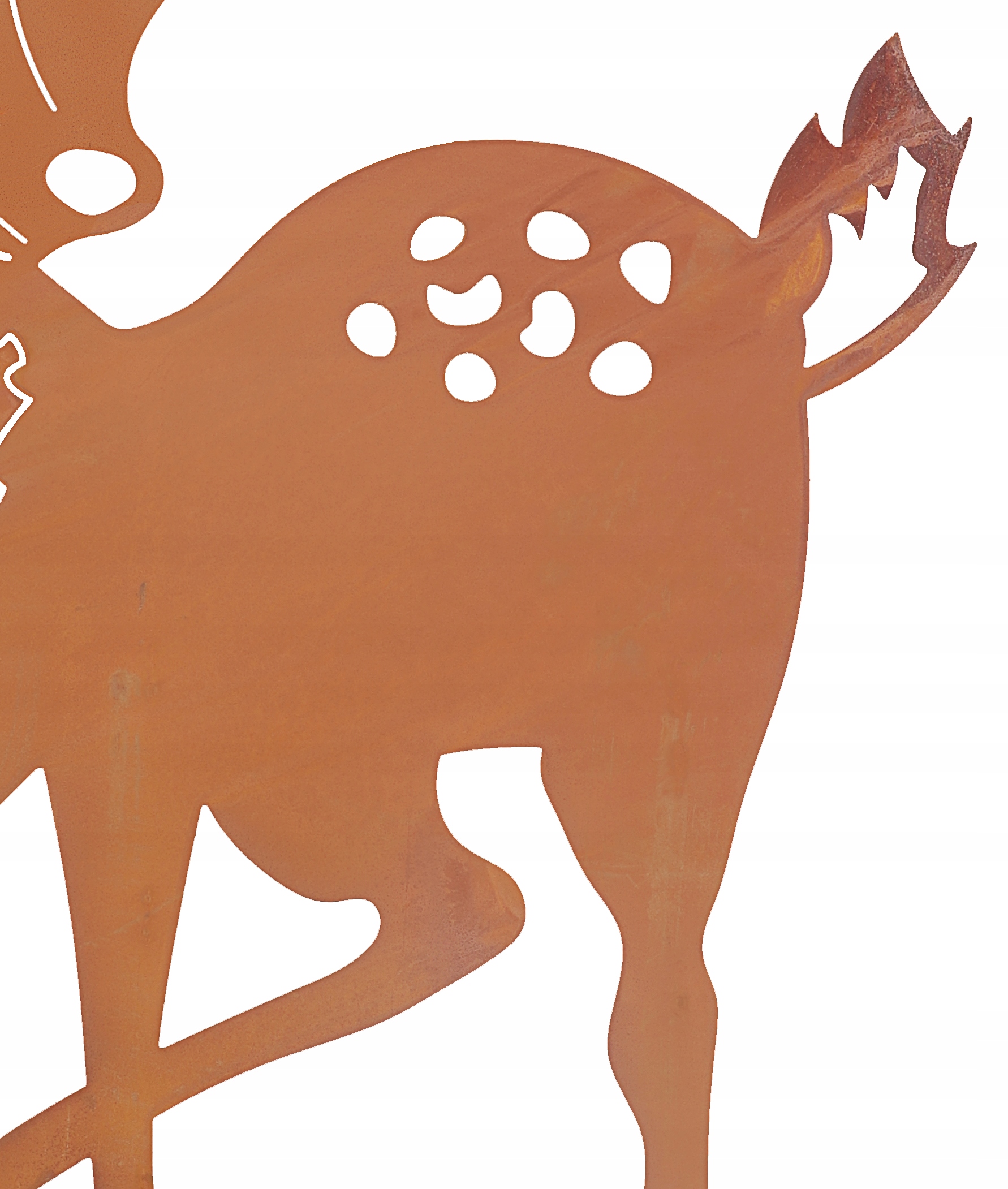 - Олень, вистрілений з листового металу на стрижні до молотка (з згорнутою ногою) довжиною 755 мм і шириною 400 мм, саме тому це універсальна прикраса, яка вписується в менші, але й більші простори. горщик. 4