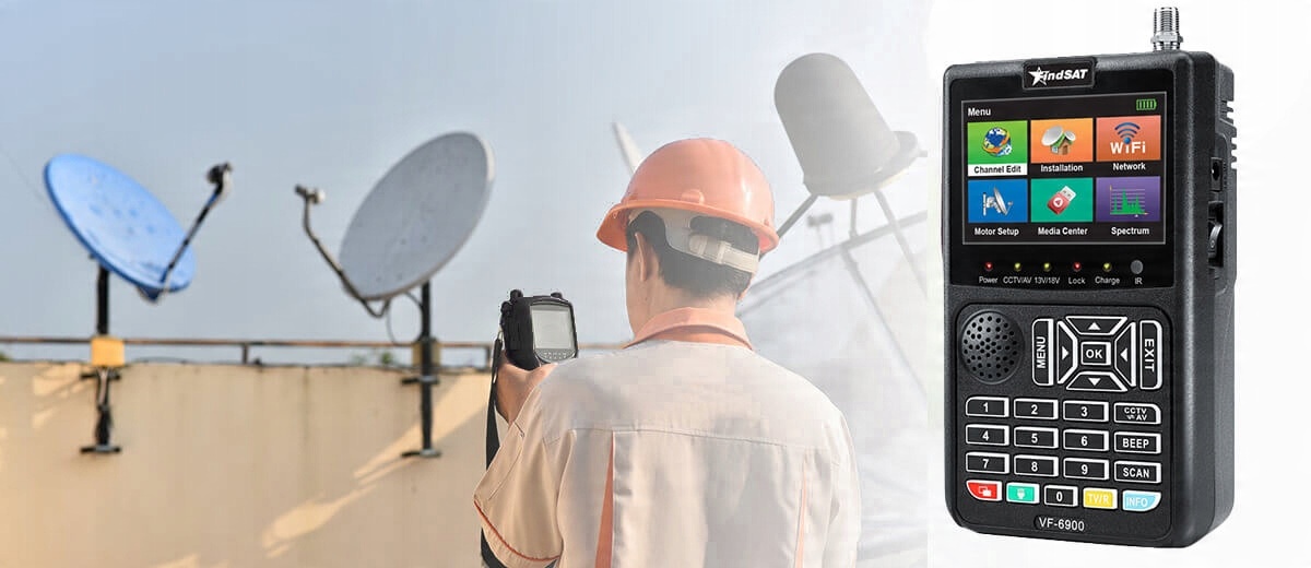 Простий у користуванні супутниковий лічильник 4K SAT H.265 із 3,5-дюймовим кольоровим TFT-дисплеєм із переглядом у реальному часі. Він використовується для позиціонування супутникових антен для правильного прийому сигналу. Основні функції вимірювання, такі як сила сигналу та якість, відображаються у %. Крім того, він має функції індикації помилок BER, PWR, SNR. Вбудований аналізатор спектру. Лічильник підтримує всі традиційні конвертери SAT LNB і UNICABLE I/II SCR/DCSS. Завдяки входу та виходу AV він також ідеально підходить як тестер дляустановок відеоспостереження. Лічильник має підсилений динамік.