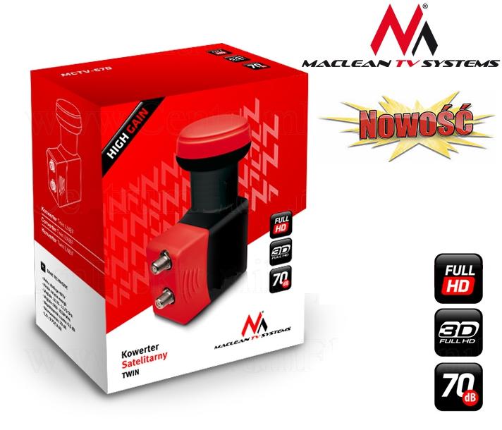 Високоякісний універсальний подвійний супутниковий перетворювач (LNB) MCTV-670 з коефіцієнтом шуму 0,1 дБ. Дозволяє підключити два супутникові приймачі або один супутниковий приймач із рекордером і двома незалежними головками (входи LNB), наприклад: декодер n-TV, рекордер n-box. Він дуже добре працює в багатокімнатних супутникових установках (Telewizja n, Cyfra +, Cyfrowy Polsat)