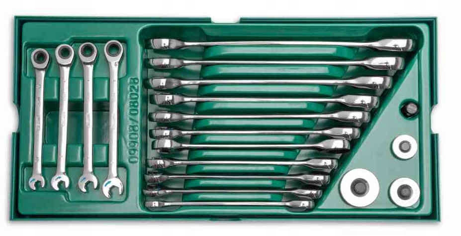 08028 - Набір комбінованих гайкових ключів із тріскачкою, 19 ящиків