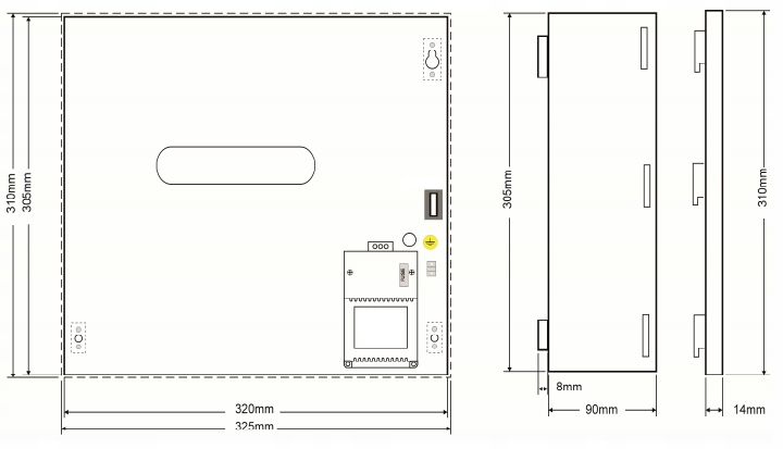 - Зовнішні розміри корпусу: 320 x 305 x 90+8 мм [+/-2 мм] li>