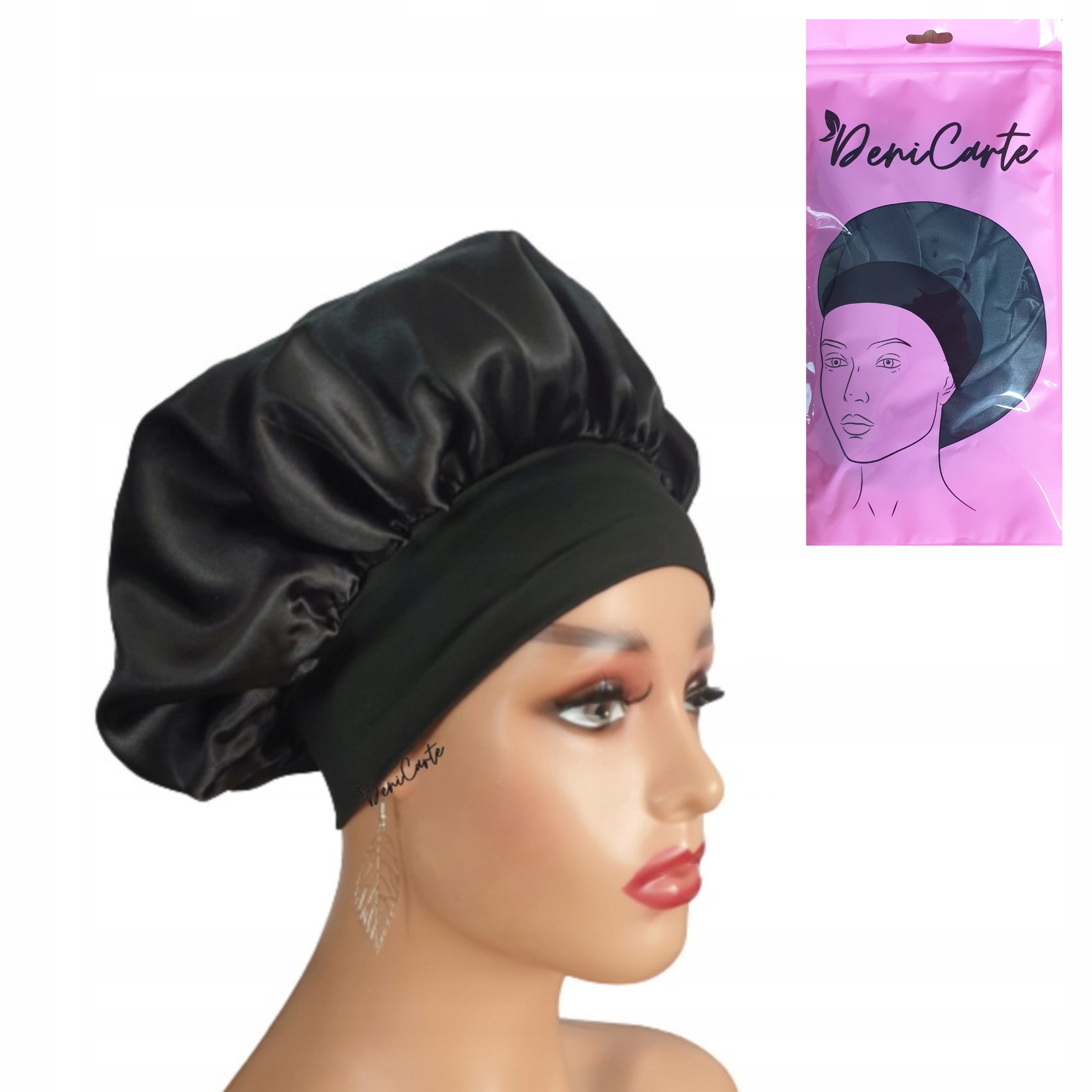 ШАПКА ЗАХИСТУ ДЛЯ ВОЛОССЯ АТЛАСНА DENI CARTE З ШИРОКОЮ РЕЗУМКОЮ ЧОРНА