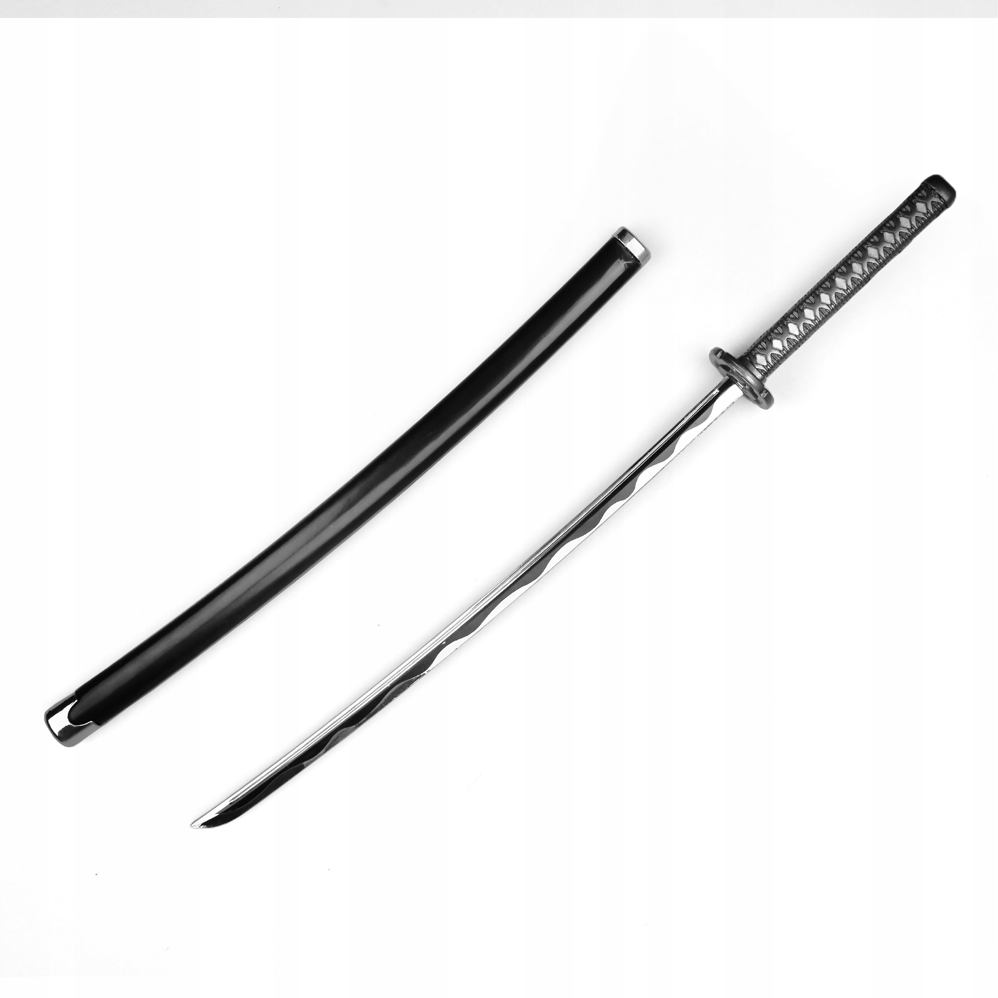 Виготовлений з міцного металу Катана вражає блискучими чорними піхви та срібними акцентами на фурнітурі. Лезо світить характерною схемою хвиль, символізуючи смертну точність у поєднанні з сучасною майстерністю. Ручка загорнута в сріблястий малюнок у стилі Цука-Макі, поєднуючи класичну традицію з футуристичним світом кіберпанку. Простий, круглий цуба підкреслює мінімалістичний, професійний характер катани, ідеально підходить як для впливу, так і для щоденного носіння.