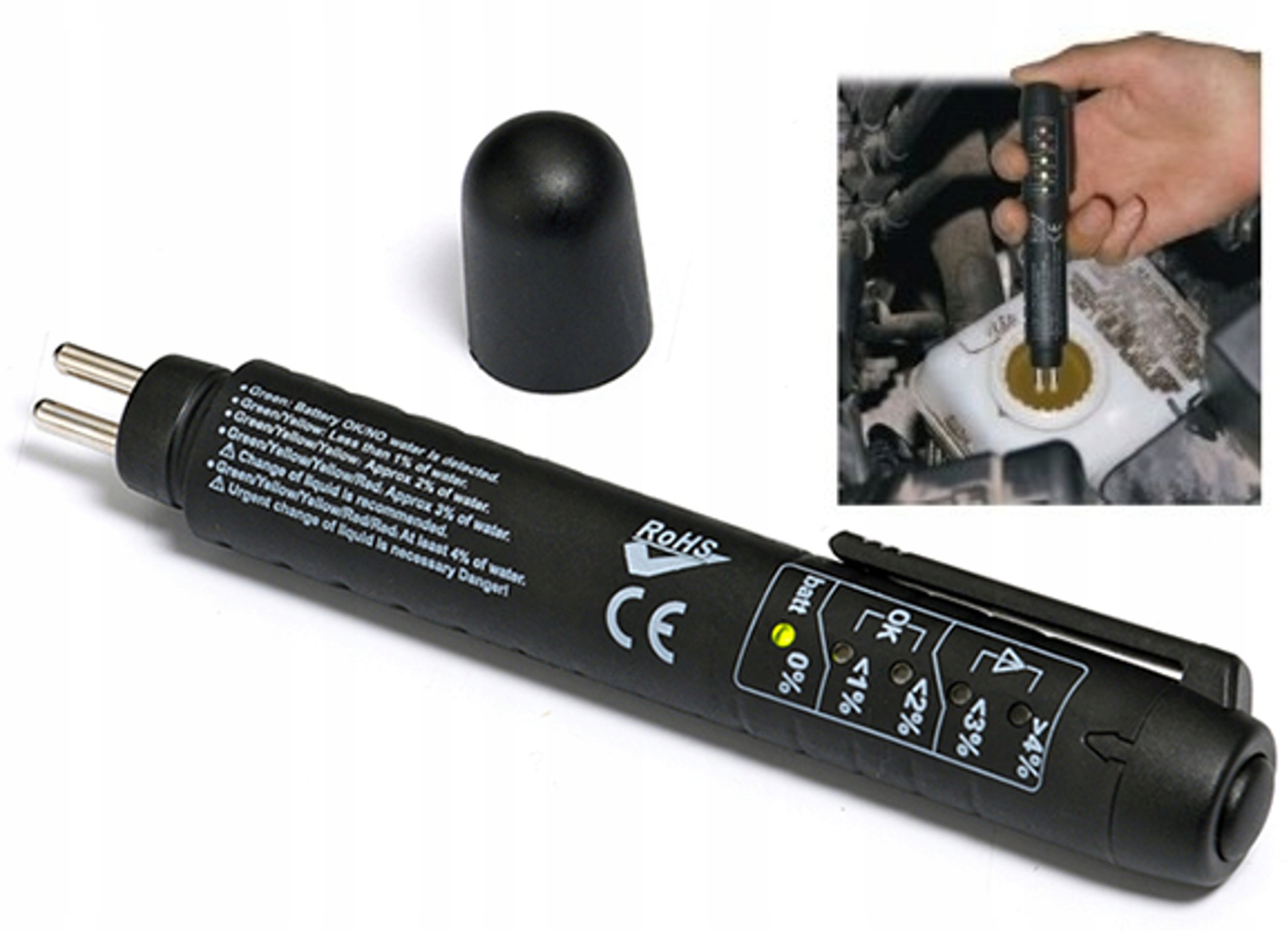 - Пристрій дозволяє швидко та зручно перевірити вміст води в гальмівній рідині.