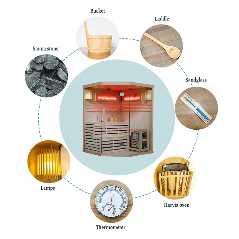 ✅ Аксесуари: усі необхідні аксесуари входять до сауни