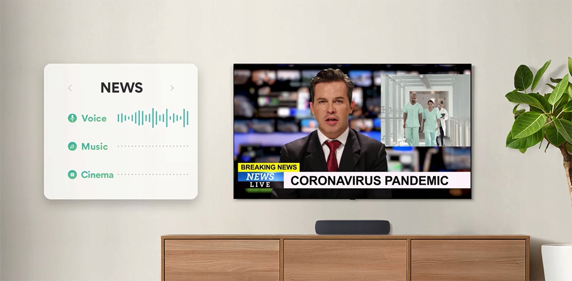 Технологія адаптивного звуку використовує покращений алгоритм, який визначає голос, звукові ефекти та певні частоти, а потім оптимізує звук відповідно до жанру, щоб кожна сцена насолоджувалася ще більше захоплюючий досвід.