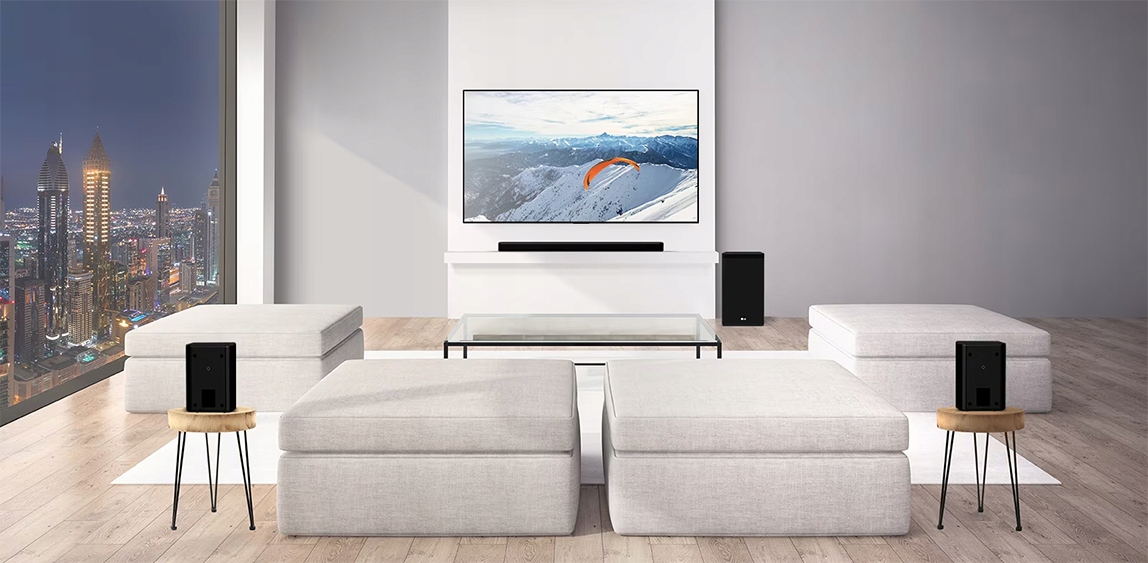Розширте звукову панель LG SP8YA до 5.1.2-канальної системи з двома задніми динаміками. Таким чином ви створите звукову сцену з точно локалізованими джерелами в усіх напрямках, занурюючи вас ще глибше в багатство аудіопереживання, щоб бути прямо в центрі події