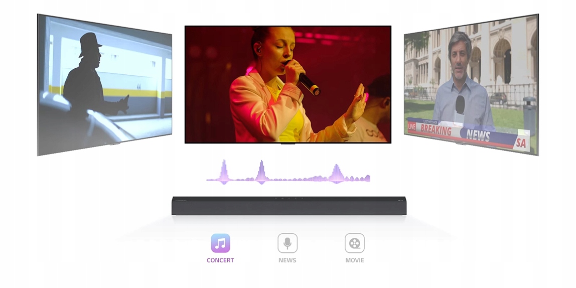 - Удосконалений процесор об'ємного звучання з 9 попередньо визначеними налаштуваннями звукової сцени та технологією AI Sound Pro, яка автоматично аналізує вміст і підбирає для нього оптимальні звукові параметри. Ви почуєте кожне слово завдяки кришталево чистим діалогам і оціните динамічні бойовики з потужним ефектом