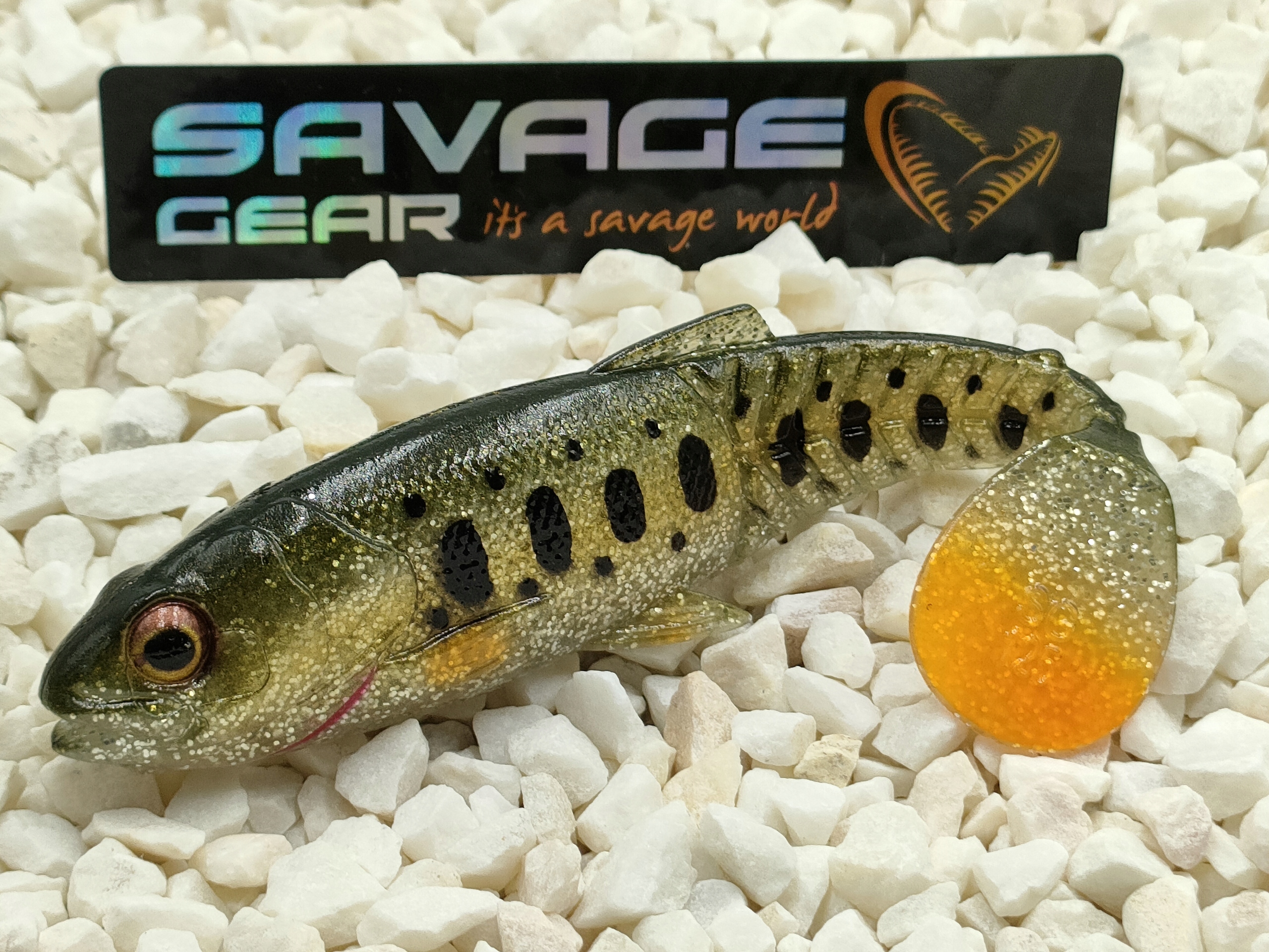 Предметом аукціону є гума Savage Gear CRAFT CANNIBAL Paddletail 12.5 cm кольору Olive Silver Smolt. Приманку розробив і спроектував легендарний дизайнер Мадс Гроссель. Профіль приманки натхненний молодим смолтом лосося. Він має відкритий рот класичного канібала, реалістичні великі гумові очі та новий унікальний дизайн хвоста. Цей специфічний хвіст дозволяє гумі рухатися дуже реалістично навіть на дуже низькій швидкості.